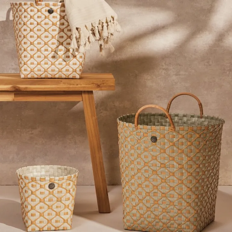 Ivy & Rose stor kurv med håndtak 35×35 cm i matcha green fra Handed By er en del av IVY & ROSE-serien, som forener vietnamesisk flettetradisjon med moderne materialer.