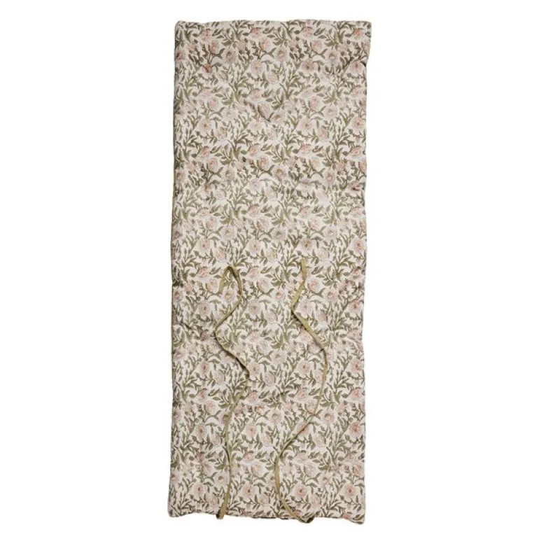 Ivy sittepute/madrass i støvet grønn fra Lene Bjerre er både praktisk og vakker. Med sine mål på 180×70 cm og fyll av resirkulert bomull gir den en fast og komfortabel sittestøtte, perfekt for benker eller som loungemadrass.