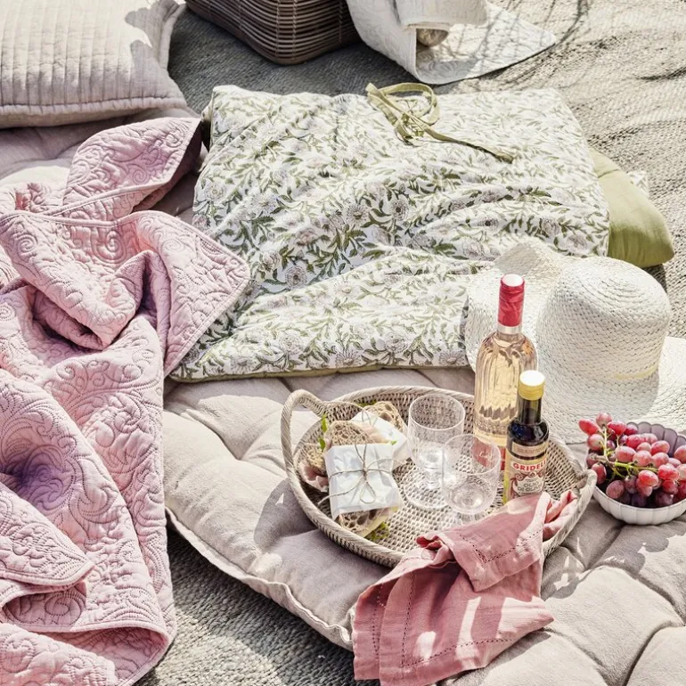 Laget i 100 % bomull med blokktrykk på den ene siden og en matchende ensfarget bakside, gir madrassen et kunstnerisk og fleksibelt uttrykk. Et naturlig valg for deg som vil løfte innredningen i stue, soverom eller på uteplassen.