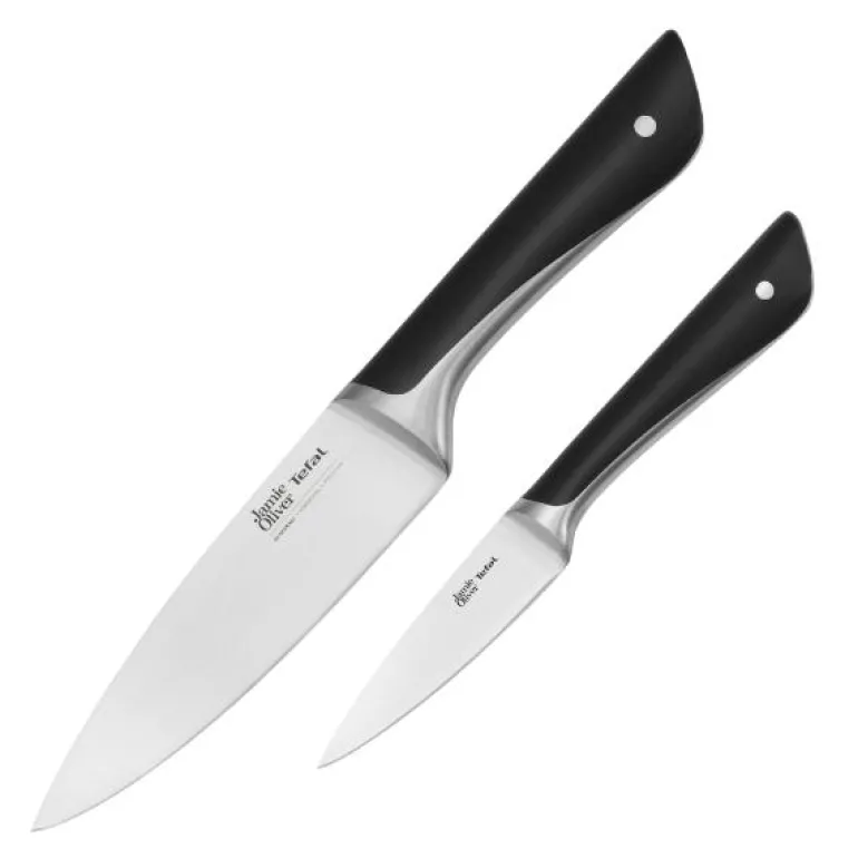 «Denne kombinasjonen er bare så nyttig. Bruk den allsidige kokkekniven til enkelt å hakke sesongens grønnsaker, skjære kjøtt av høy kvalitet, finhakke delikate, ferske urter og mye mer. Den nøyaktige, lille skrellekniven er perfekt til å kutte og skjære opp frukt og grønnsaker. La oss komme i gang med matlagingen!» Jamie Oliver.