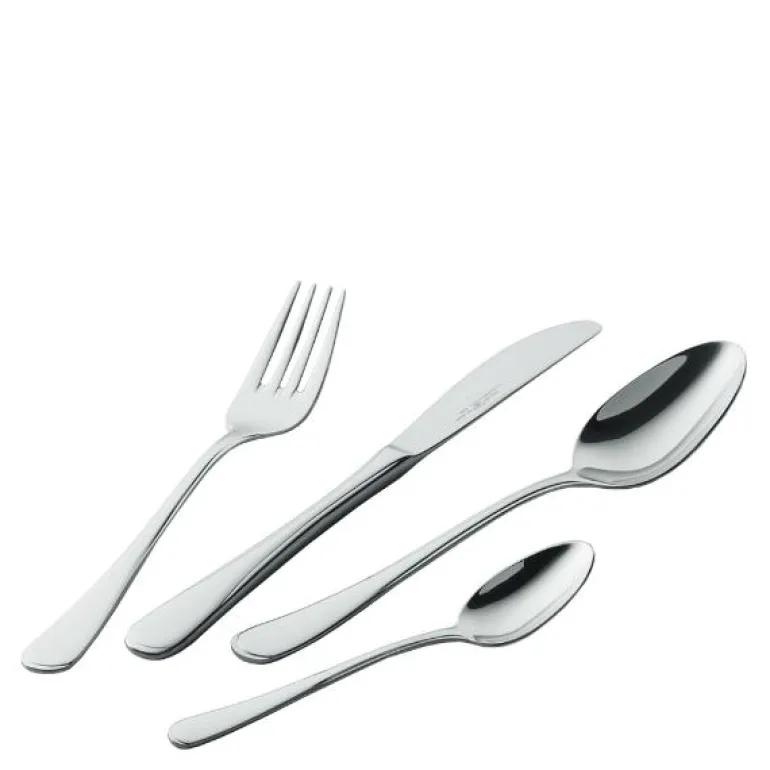 Bestikksett, Jessica, i 24 deler fra Zwilling. Bestikksettet har et tidløst og elegant design, mykt formede med en liten relieff øverst på skaftet. Oppgrader hverdagsbestikket hjemme, eller gi det bort som en fin gave til noen som skal flytte inn i sin første bolig. De er laget i blankpolert 18/10 rustfritt stål og er et meget holdbart sett, som kan brukes både til festbordet og hverdagsmiddagen. Stålets kvalitet gjør at bestikket står mot riper og rust, og holder seg fine over lang tid. De kan vaskes i oppvaskmaskin, og blir fort en favoritt hjemme.