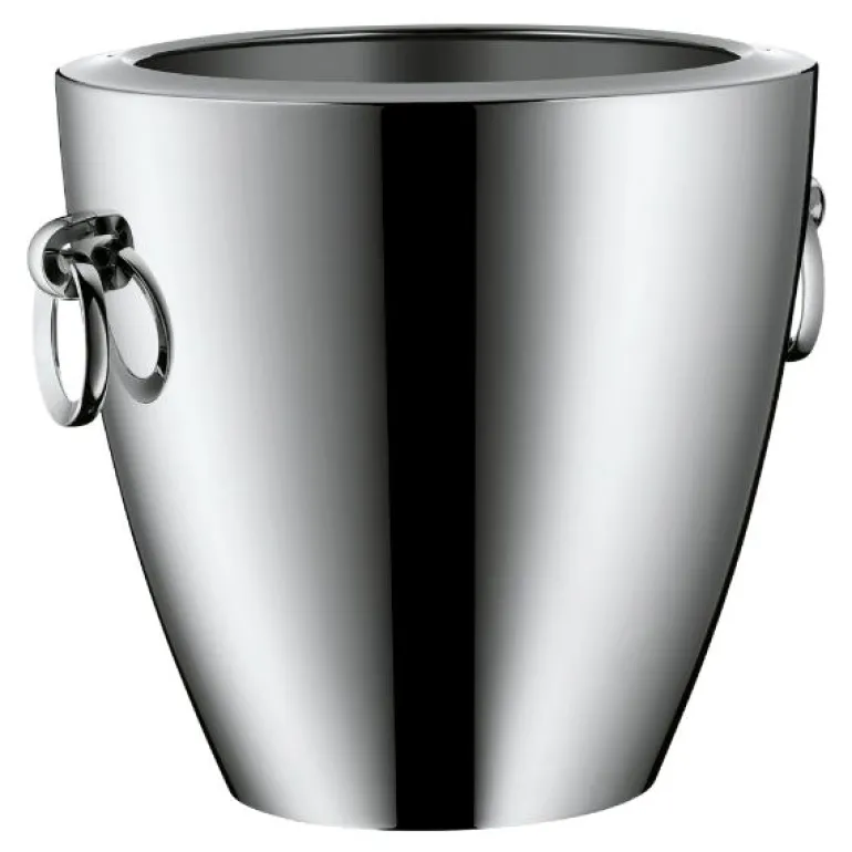 JETTE champagnekjøler er laget av Cromargan® rustfritt stål 18/10. Den er 24 cm i diameter og 23 cm høy, så den kler bordet uten å være for iøynefallende. Når den er fylt med is, holder champagnekjøleren dine fine viner herlig kalde i lang tid. JETTE champagnekjøler er laget av Cromargan® rustfritt stål, så den tåler oppvaskmaskin. Dens polerte overflate gjør den lett å rengjøre.