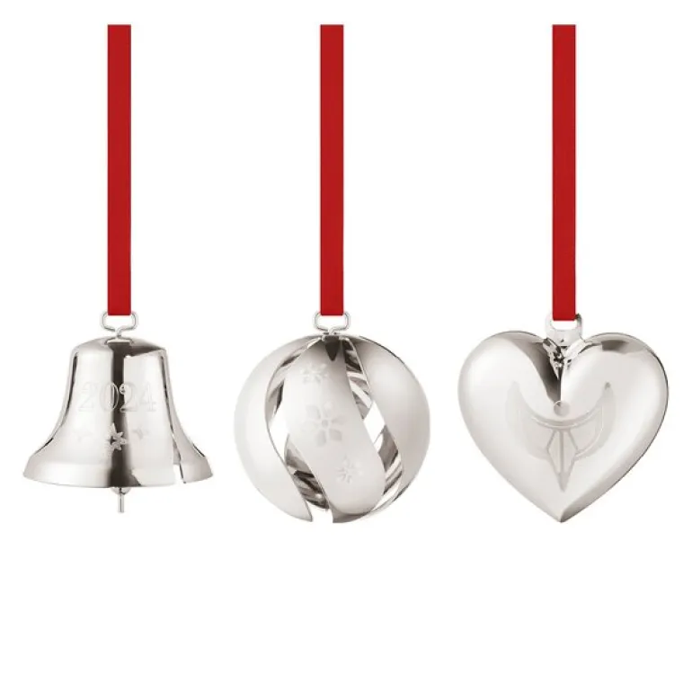 Jul 2024 juledekorasjon 3 stk sølv fra Georg Jensen er en del av den vakre juleserien designet av Sanne Lund Traberg, en langvarig samarbeidspartner med Georg Jensen. Årets utgave er inspirert av en stjerneklar vinternatt, og de tre ornamentene gjenspeiler elementer fra desemberhimmelen med skinnende stjerner, en glødende måne og glitrende snøflak. Hvert stykke utstråler en følelse av ro og fred, og tilfører hjemmet ditt en elegant glød som lyser opp ethvert hjørne i juletiden.