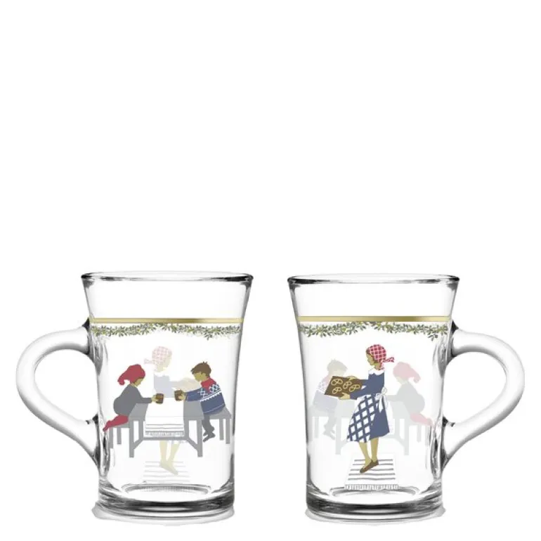 Holmegaard Christmas inviterer til en nostalgisk julestemning med kunstneren Jette Frölichs mesterlige papirklipp som rammer inn julekjøkkenets varme og levende atmosfære. De stemningsfulle jule-hotdrinkglassene for 2024, solgt i par, kombinerer Holmegaards glassrefleksjoner med Jette Frölichs originale kunstneriske univers, perfekt egnet til å nyte julens mange deilige varme drikker. Glassene, som er 11 cm høye og designet for å tåle varme drikker, ligger godt i hånden og er et ideelt følge gjennom julefeiringen.
