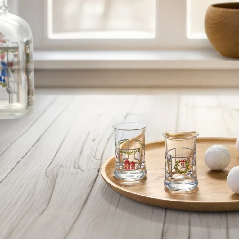Holmegaard Christmas tar deg med på en nostalgisk reise tilbake til julekjøkkenets varme og levende atmosfære gjennom kunstneren Jette Frölichs nostalgiske papirklipp. Deres 2024-utgave av juledrammeglassene, solgt i par, forener Holmegaards raffinerte glassrefleksjoner med Jette Frölichs originale kunstneriske univers. Disse 6 cm høye glassene, som rommer 3 cl, ligger komfortabelt i hånden og tilfører en ekstra stemningsfull touch til julefeiringen.
