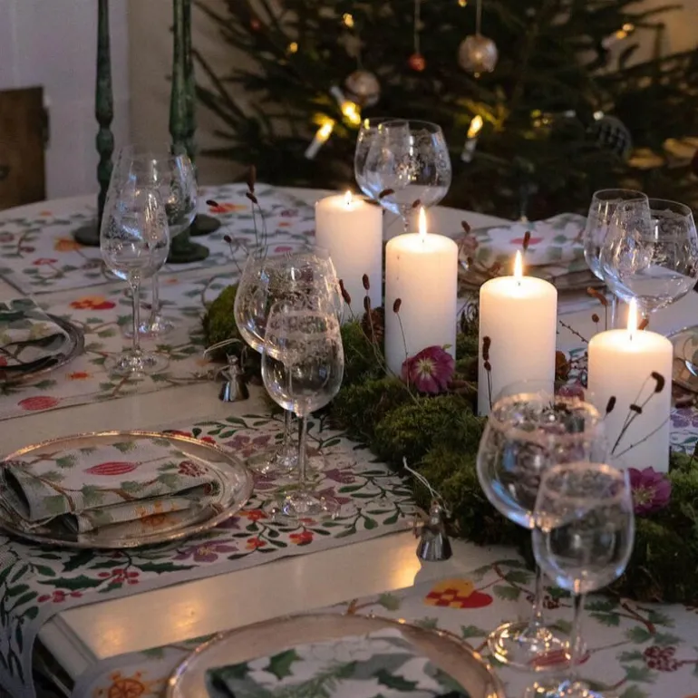Juleglede bordbrikke 35×48 cm fra Ekelund setter stemningen for sesongens måltider. Den røde fargen og mønsteret skaper et lunt uttrykk ved hvert kuvert.