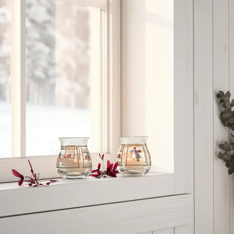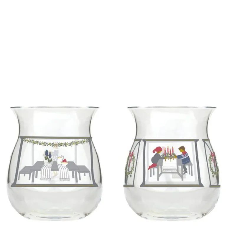 Disse 7,5 cm høye telysestakene er ikke bare dekorative, men de skaper også en stemningsfull atmosfære når flammene danser og kaster skygger og refleksjoner fra Frölichs motiv. Hver av de to telysestakene har ulike motiv, begge inspirert av Jette Frölichs nostalgiske juleverden. I 2024-utgaven tar denne kolleksjonen oss med inn i kjøkkenets hjerte, der magien skjer i desember med baking av julekaker og forberedelser av tradisjonell julemat.