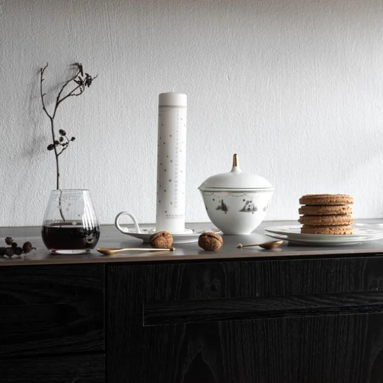Kalenderlys i serien Julemorgen fra Wik & Walsøe med det samme, nostalgiske motivet som deres servise som deler personlige juleminner, og håper å inspirere nye generasjoners juletradisjoner – klassisk, men likevel dempet moderne.