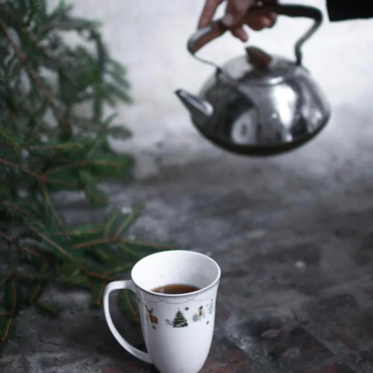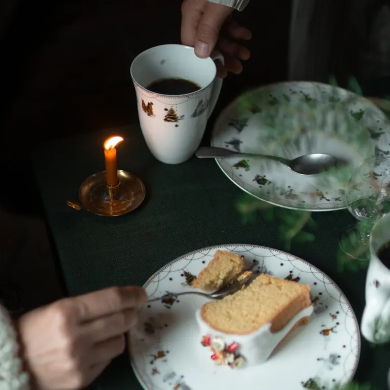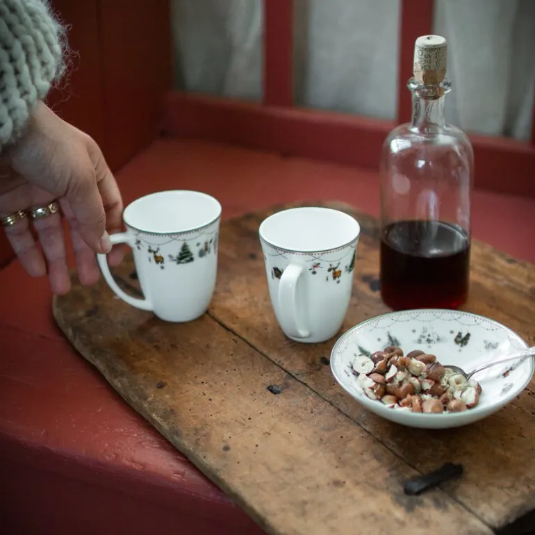 Julemorgen Story krus fra Wik & Walsøe. Et servise som deler personlige juleminner, og håper å inspirere nye generasjoners juletradisjoner – nostalgisk, men likevel dempet moderne.