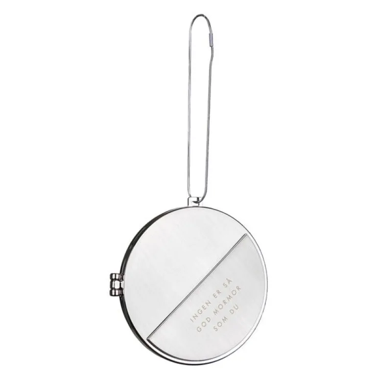 Årets julepynt 2024 fra Pictureit vakkert dekorert med teksten «INGEN ER SÅ GOD MORMOR SOM DU». En elegant medaljong formet som en julekule med plass til et personlig bilde inni. Medaljongen er laget av solid metall, med en fin børstet overflate som gir et sofistikert uttrykk.