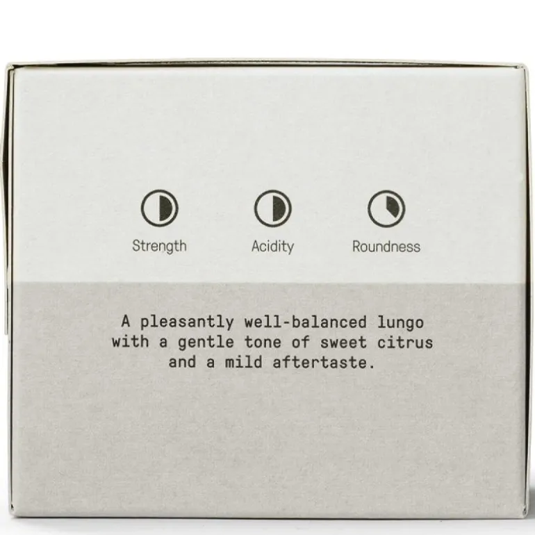 En behagelig og velbalansert lungo med noter av citrus og en fin, mild ettersmak. En klimavennlig kaffe hvor Sjöstrand kompenserer for mer karbondioksid enn utslippet fra bønne til kopp.