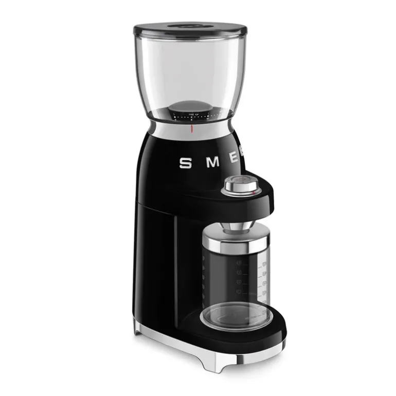 Kaffekvernen har en bønnebeholder med kapasitet på 350 gram og en beholder for malt kaffe på 130 gram. Beholderen for ferdigmalt kaffe kan rengjøres i oppvaskmaskin, mens resten av kvernen anbefales rengjort for hånd. Med justerbar kaffemengde gir SMEG CGF01 full kontroll over bryggeprosessen, slik at du kan nyte fersk kaffe med alle de over tusen smaks- og aromastoffene som frigjøres i møtet med varmt vann.