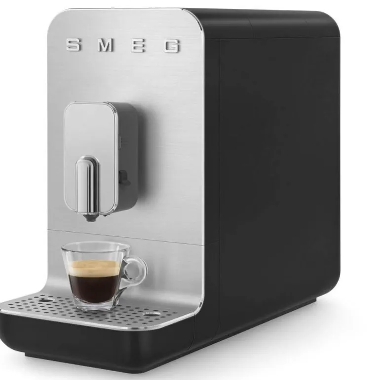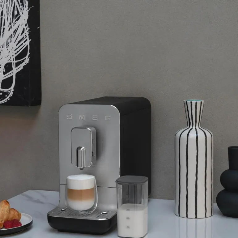 Kaffemaskin BCC13 1,4 liter svart med melkeskummer fra Smeg. Nyt en verden av utsøkte kaffedrikker fra ferske bønner den automatiske kaffemaskin. Med bare et enkelt tastetrykk kan du utforske et bredt utvalg av kaffetyper og smaker. Det integrerte melkesystemet gjør det enkelt å skape deilige melkebaserte drikker uten bryet med manuell tilberedning.