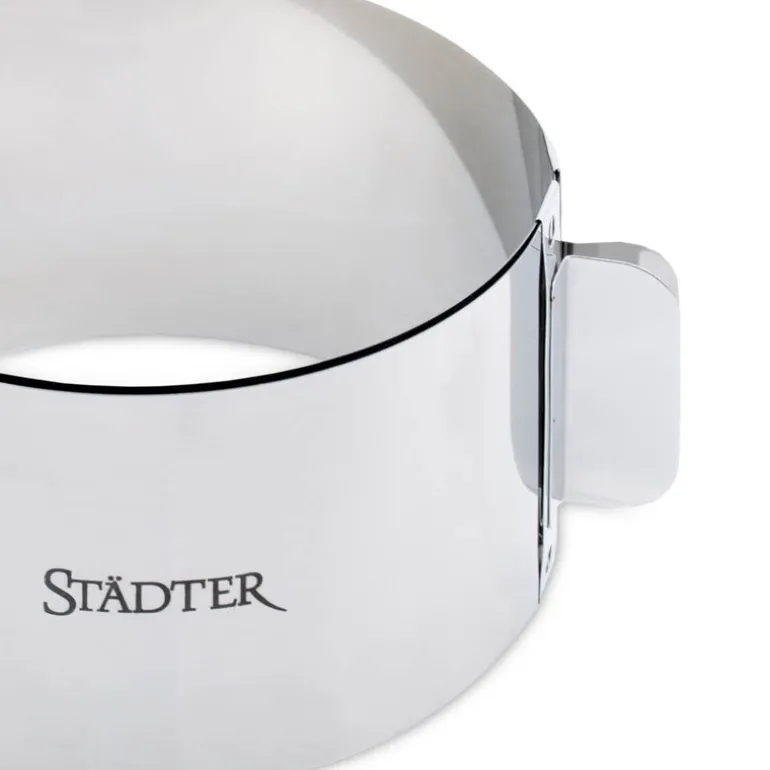 Städters justerbare kakering i rustfritt stål gir deg full fleksibilitet på kjøkkenet. Med en diameter som kan tilpasses mellom 15 og 30 cm og høyde på 9 cm, passer den perfekt til alt fra små desserter til høye lagkaker.