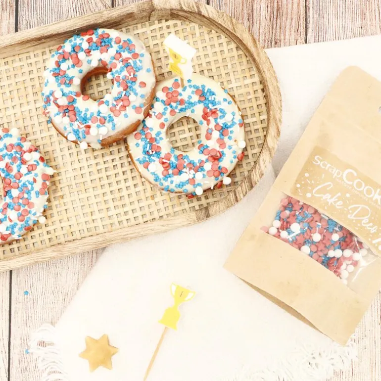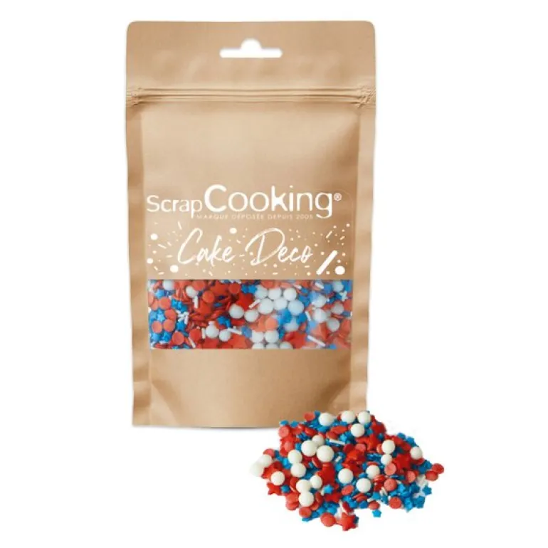 Gjør 17. mai-baksten komplett med dette fargerike kakestrøsselet fra ScrapCooking! Med rødt, hvitt og blått strøssel i en praktisk 50 g forpakning, setter du enkelt et festlig preg på både cupcakes, kaker og andre søtsaker som skal nytes på nasjonaldagen.