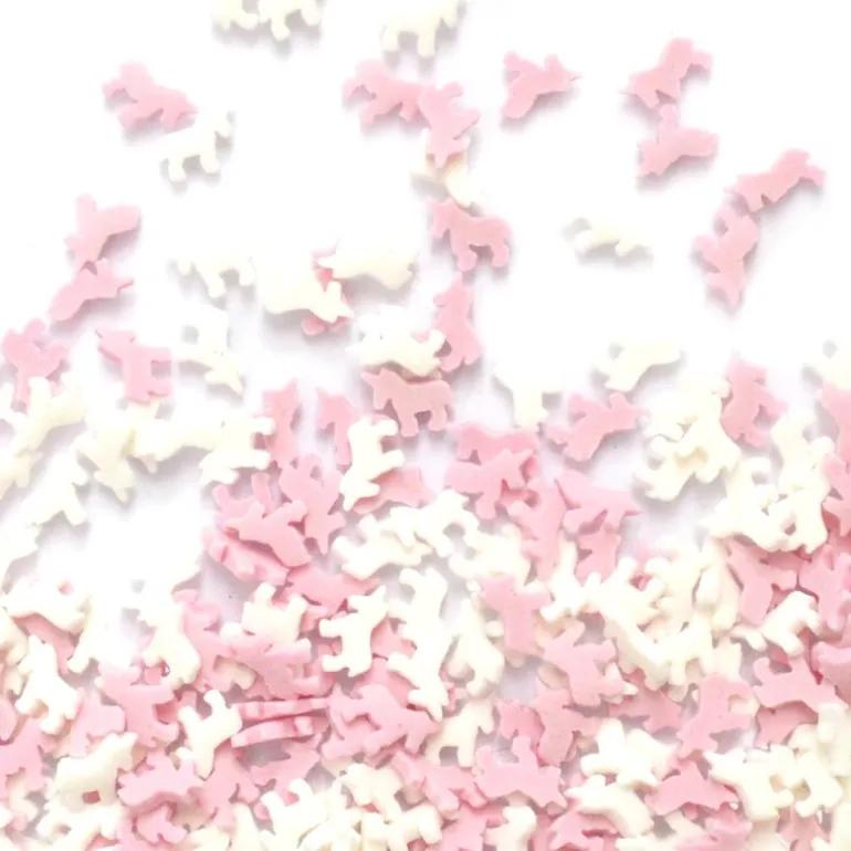 Dryss over glasur, krem eller is, eller bruk dem som bordpynt for en helhetlig enhjørningstemning. Innholdet på 50 g rekker langt og gir en fargerik og leken finish på ethvert bakverk.