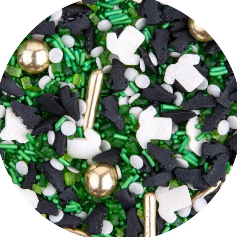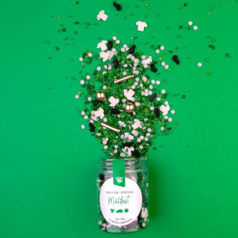 Dekorativ kakestrøssel, fotball målfest, fra Cacas. Pynt opp dine bakverk til fotballfest med dette stilige kakestrøet fra Cacas. Miksen består av strø som passer til den fotballinteresserte og inneholder blant annet fotballsko, t-skjorter, gullballer m.m. Bruk strøet som pynt på både cupcakes, kaker, cakepops og cookies. Skal du lage en ekstra fin kake til en fotballglad er denne miksen perfekt.