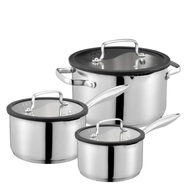 Skap kulinariske mesterverk med Karla grytesett, som inkluderer størrelser på 1,5L, 2L og 3L. Kasserollene er laget av høy kvalitet med en støpt bunn av aluminium og rustfritt stål, komplett med glasslokk med en silikonkant for enkel tilberedning. Disse effektive kasserollene er designet med flere lag for optimal varmefordeling. Ved å kombinere rustfritt stål og aluminium garanterer vi jevn og rask oppvarming for perfekte resultater hver gang. Dessuten passer de til alle typer komfyrer.