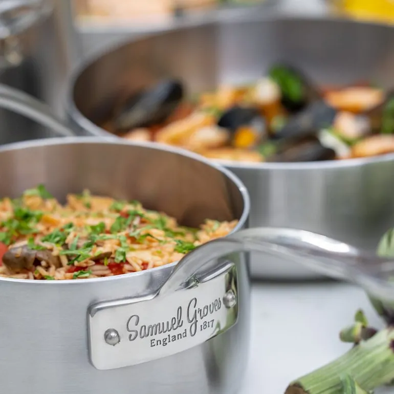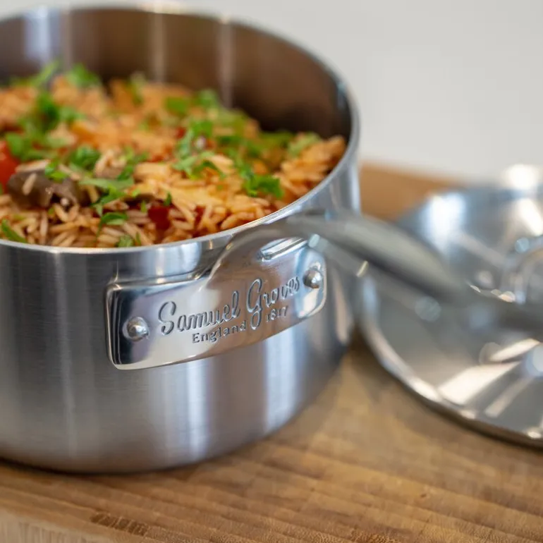Oppdag ekte kjøkkenkvalitet med Samuel Groves Classic Stainless Steel kasserolle. Denne modellen rommer 1,5 liter og er laget i tre lag – en kjerne av aluminium omgitt av rustfritt stål på begge sider. Det gir deg en optimal kombinasjon av varmeledning og robusthet. Den børstede finishen gir et moderne uttrykk som passer inn i ethvert kjøkken, samtidig som materialvalgene sikrer høy ytelse og lang levetid.
