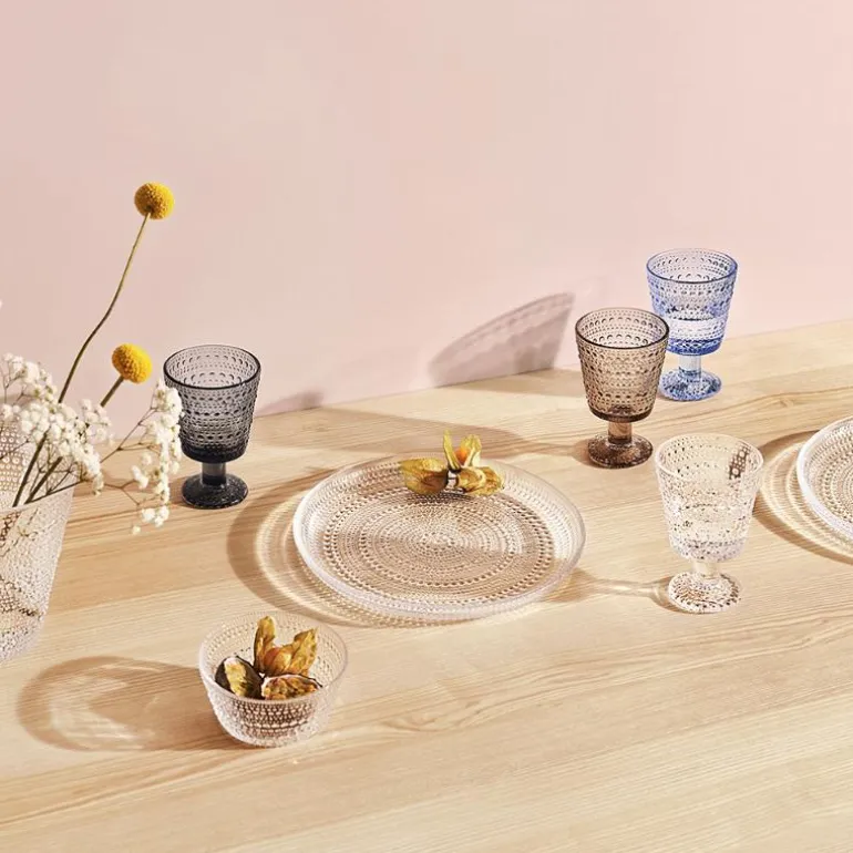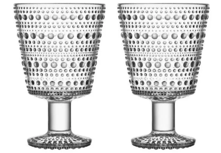 De fine og holdbare drikkeglassene på fot er en del av Iittalas serie Kastehelmi. De er designet av Oiva Toikka, og passer like bra til hverdag som til fest. Serien har navnet sitt etter de små, dugglignende glassperlene som kjennetegner serien, siden Kastehelmi er det finske ordet for duggdråpe. Glassene på fot finnes i flere farger, og kan gjerne kombineres med andre deler av serien for en komplett borddekking.