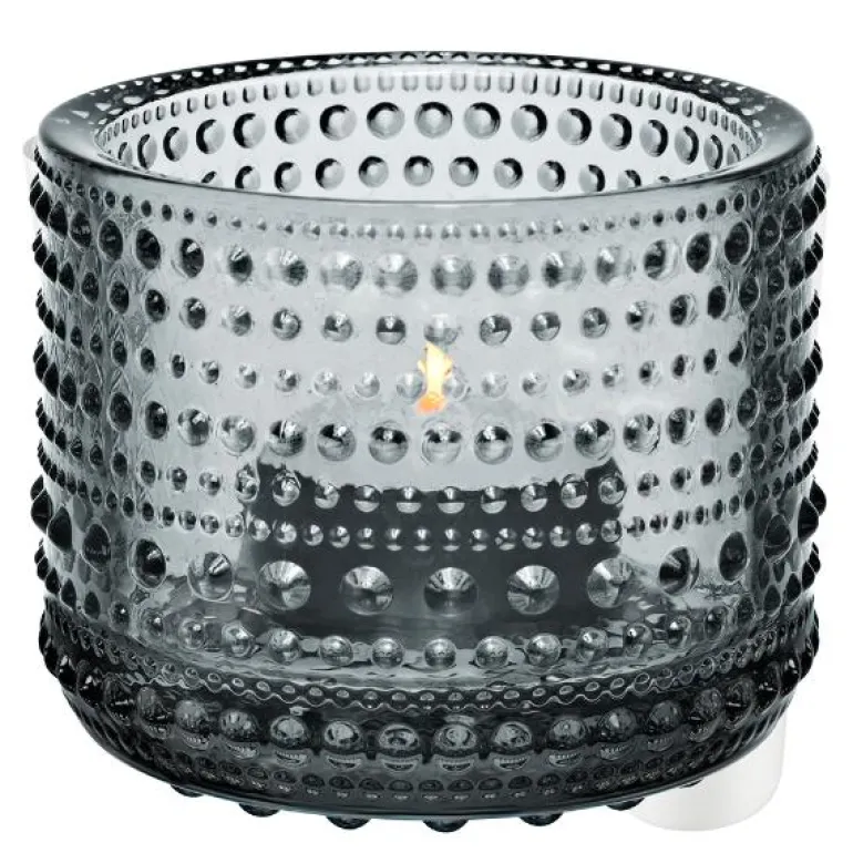 Kastehelmi betyr duggdråper på finsk. Designet av Oiva Toikka i 1964, men relansert i 2010. Oiva Toikka eksperimenterte med ulike overflater på glass som kunne skjule skjøtene som dannes i produksjon av presset glass. Inspirert av den finske naturen og duggdråpene som glinser som perler på ei snor på gress i morgensolen, ble Kastehelmi til. Er i gjennomfarget glass. Tåler oppvaskmaskin.