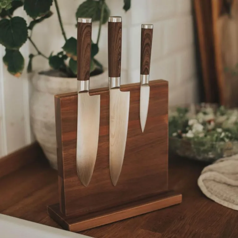 Vær stolt over de fine kjøkkenknivene dine du har på kjøkkenbenken. Med Kaya Knivstativ er de alltid lett tilgjengelige og i tillegg opprettholdes både skarpheten og kvaliteten på knivene. Utformingen av knivstativet gjør det mulig å plassere knivene på begge sider siden at magneten er på begge sider.