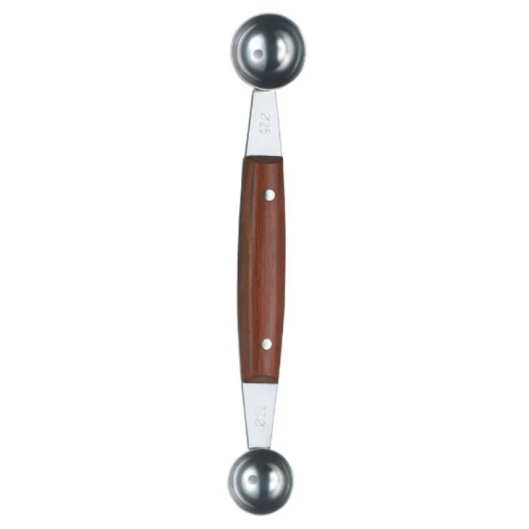 Victorinox kulejern i rustfritt stål med treskaft. Kulejern i to størrelser med diameter 22 mm i den ene enden av skaftet og 25 mm i den andre enden av skaftet. Passer ypperlig til å lage små kuler av potet, melon o.l.Victorinox er et gammelt kvalitetsmerke på kniver fra Sveits.Det begynte med de verdensberømte Swiss Army Knives og produserte etterhvert kniver både til profesjonellt bruk og til hobby kokker.Victorinox har fokus på kvalitet, innovasjon og tradisjon.I de senere år også produserer de i tillegg andre produkter som klokker, reiseartikler og dufter.