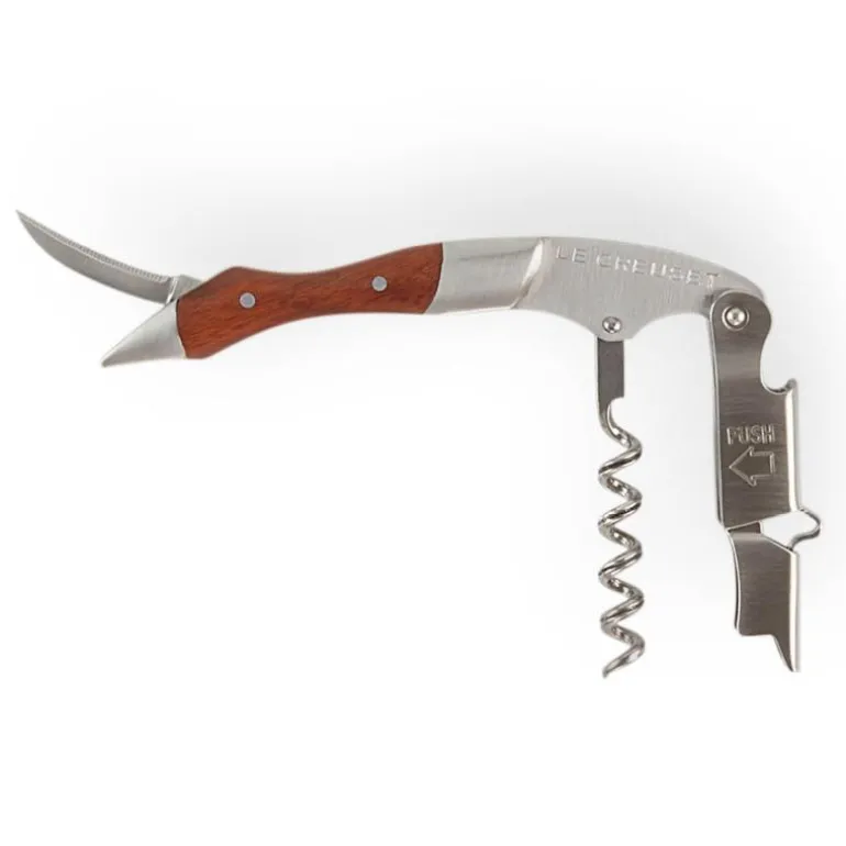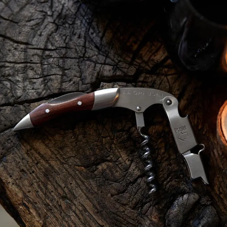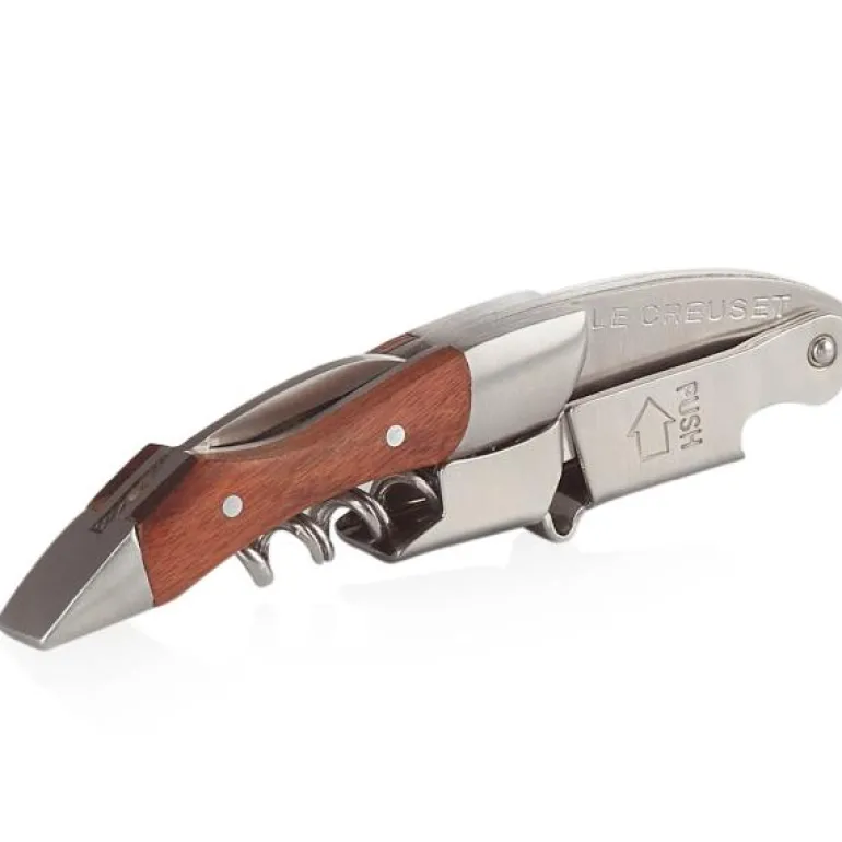 Le Creusets WT-110-kelnerkorketrekker er en populær korketrekker til både profesjonell bruk og for amatører. WT-110 har et patentert totrinnssystem som gjør det enkelt å trekke korken ut av flasken uten å skade korken. Kelnervinåpneren har dessuten ytterligere to verktøy som kan foldes ut, en flaskeåpner og en liten, praktisk kniv for å fjerne folien på flaskehalsen. Korketrekkerens størrelse gjør den perfekt å ta med på pikniken, eller å ha liggende på bordet, i barskapet eller på bardisken. Den er også veldig grei å ha i lommen.