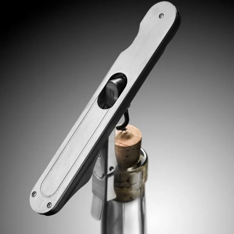 Kelnertrekker med ergonomisk utforming som åpner vinflasken med minimal anstrengelse. Fungerer på både plastkork og naturlig kork og designet har integrert foliekutter. Den er 15 cm lang og 2 cm bred. Laget i 18/8 stål og PP plast.