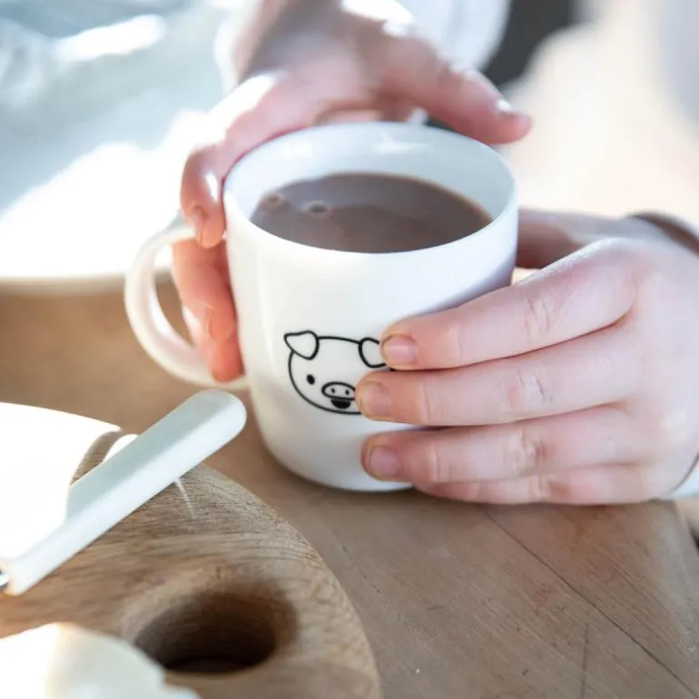 Lite, hvitt krus fra Sögne Home sin barneserie. Kruset er hvitt, med en enkel tegning av et grisehode i svart. Det håndlagde sögne kruset så dagens lys i 2013, og har med sitt tynne porselen og gode hank, blitt manges favoritt! Kolleksjonen av krus kommer i ulike farger, størrelser og utvalgte populære tekster. Sögne sine krus er blitt folkekjære favoritter som de er stolte av! Krusene er med sitt tidløse design laget for å vare i generasjoner og fylle din dag med et treffende hverdags budskap. Krusene er hyggelig å bruke der du er med familie, venner, kollegaer og som gave for ulike anledninger. Krus med varme verdier.