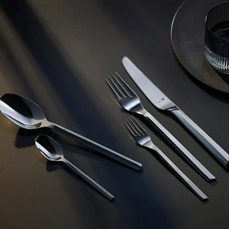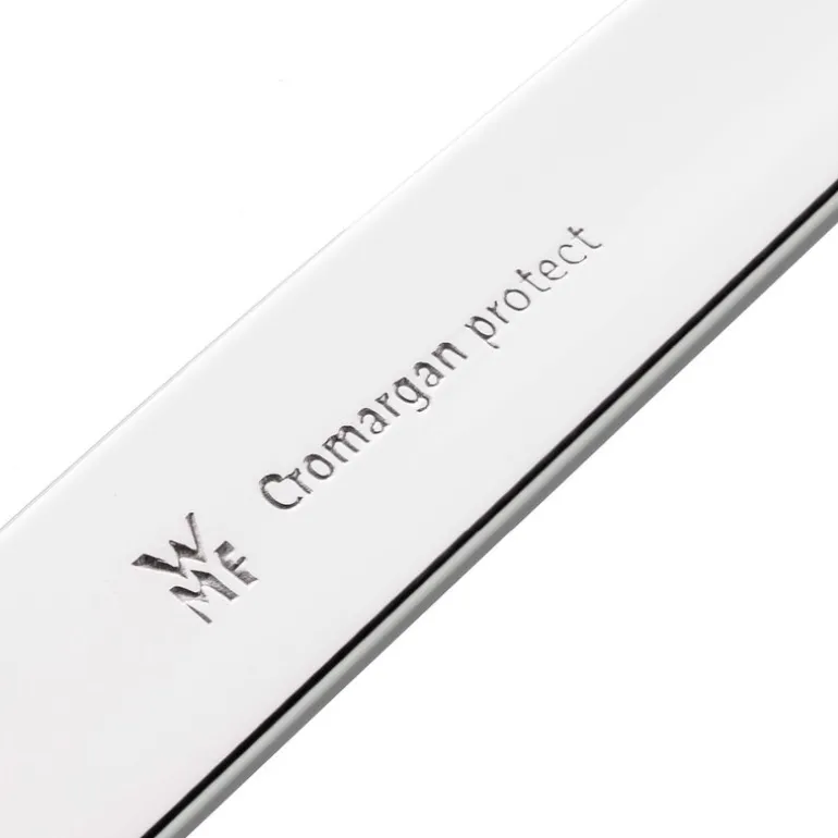 Det vakre designet er kombinert med den unike og innovative teknologien Cromargan protect®, så her får du virkelig noe for pengene. WMF bestikk kombinerer unikt design med toppkvalitet. Alle bestikkdelene er ergonomiske og ligger derfor perfekt i hånda. Takket være det patenterte overflatebelegget er delene ekstremt motstandsdyktige mot riper og bruksspor. Polerte overflater forblir blanke mens matte finisher forblir matte – med andre ord langtidsholdbar skjønnhet. Knivene er smidd fra ett enkelt stykke rustfritt bladstål og herdet i ett stykke. Den spesialdesignede sagtakkete eggen sikrer langvarig, optimal skarphet. Alle delene er i høyeste kvalitet og har blitt omhyggelig fremstilt så de lett kan rengjøres i oppvaskmaskinen.