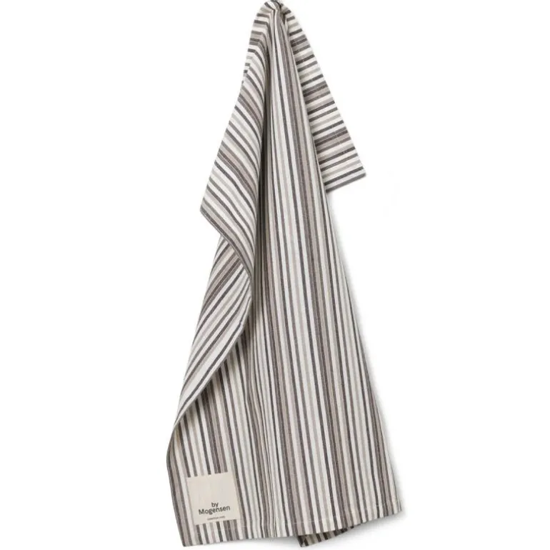 Dette tidløse og klassiske kjøkkenhåndkleet fra By Mogensen tilfører kjøkkenet både funksjonalitet og estetikk, og fungerer som et elegant designelement i rommet. Laget av 100% økologisk GOTS-sertifisert bomull, har håndkleet utmerkede tørkeegenskaper som gjør det både praktisk og holdbart i bruk. De harmoniske nyansene av grått og brunt gir det en diskret, nordisk stil som enkelt tilpasses ulike interiørstiler. Håndkleet har en rektangulær form på 56×72 cm, noe som gir god dekning og anvendelighet.
