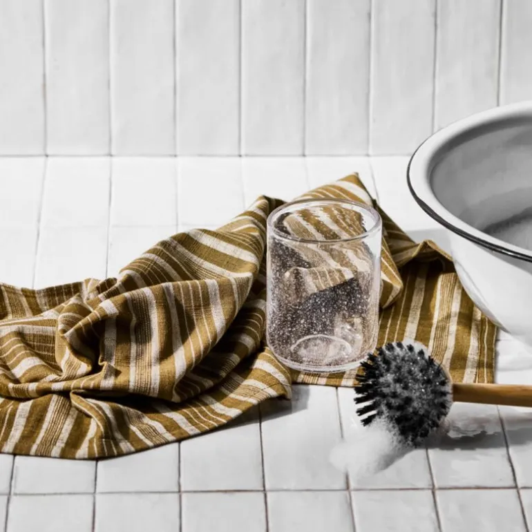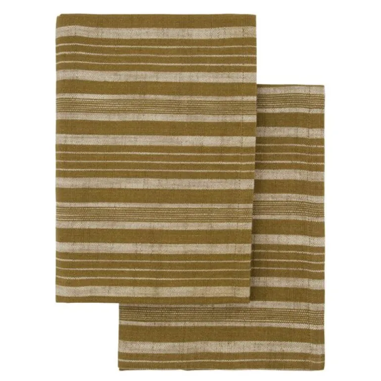 Kjøkkenhåndkle 70×50 cm 2 stk i mørk oliven fra Meraki kombinerer funksjonalitet med et stilrent uttrykk. Disse viskestykkene er laget av myk bomull og har et klassisk stripete design som tilfører en tidløs eleganse til kjøkkenet.