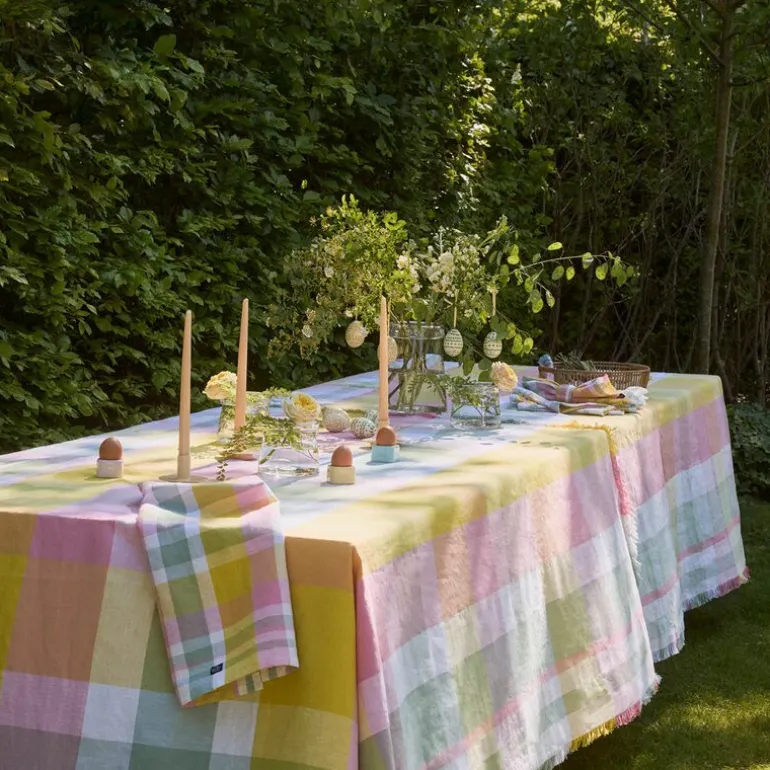 Kjøkkenhåndkle påskeruter 50×70 cm gul/grønn/rosa fra Lexington bringer våren og påskens glede inn på kjøkkenet. Dette håndkleet er laget av en myk og slitesterk blanding av lin og bomull, som gjør det både funksjonelt og behagelig å bruke. Det livlige rutemønsteret gir en frisk og festlig følelse som passer perfekt til påskens tradisjonelle måltider.