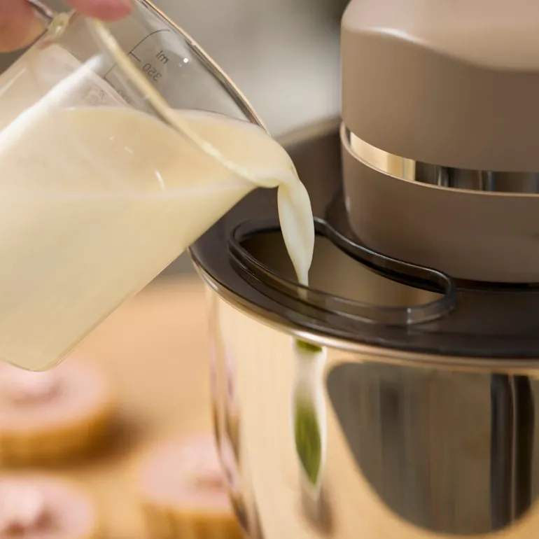 Vispen er perfekt for å piske krem eller eggehviter, deigkroken tar seg av elting til brød og pizzadeig, mens flatvispen rører sammen alt fra kakedeig til kjøttfarse. Med sin kompakte størrelse passer maskinen lett inn på kjøkkenbenken uten å ta opp unødvendig plass.