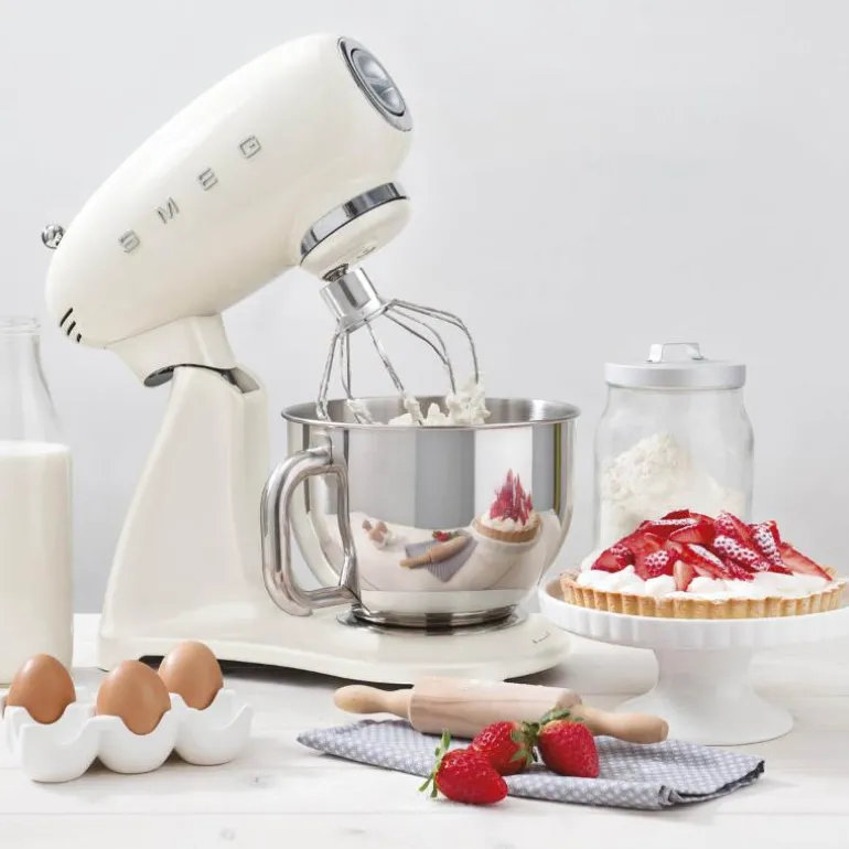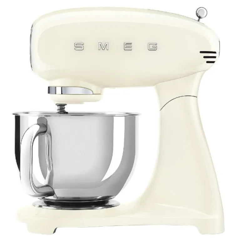 SMEG kjøkkenmaskin (SMF03) krem er maskinen for deg som liker å bake – og god design. Det stilige 50-tallsdesignet i fargen krem, kombinert med en kraftig motor på 800W, gjør at denne kjøkkenmaskinen imponerer både med utseende og funksjonalitet.
