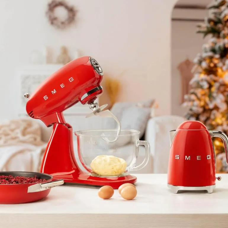 SMEG kjøkkenmaskin (SMF03) rød er maskinen for deg som liker å bake – og god design. Det stilige 50-tallsdesignet i rødt, kombinert med en kraftig motor på 800W, gjør at denne kjøkkenmaskinen imponerer både med utseende og funksjonalitet.