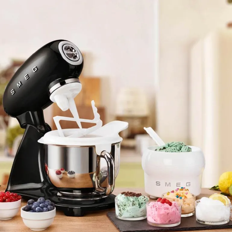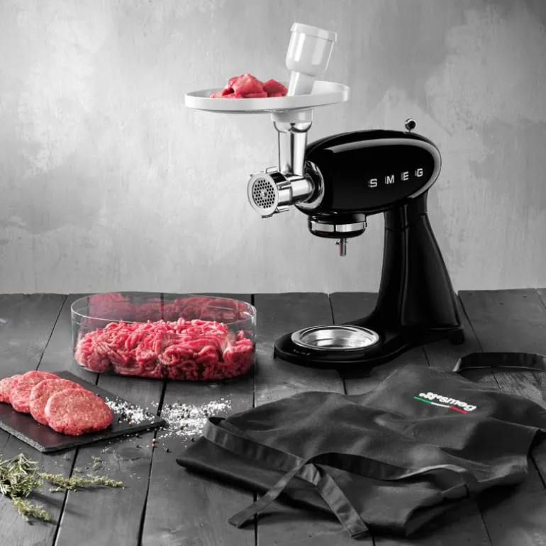 SMEG kjøkkenmaskin har også en praktisk tilleggsport hvor du kan feste annet tilbehør som pastamaskin, kjøttkvern og grønnsakskvern. Dette selges separat.