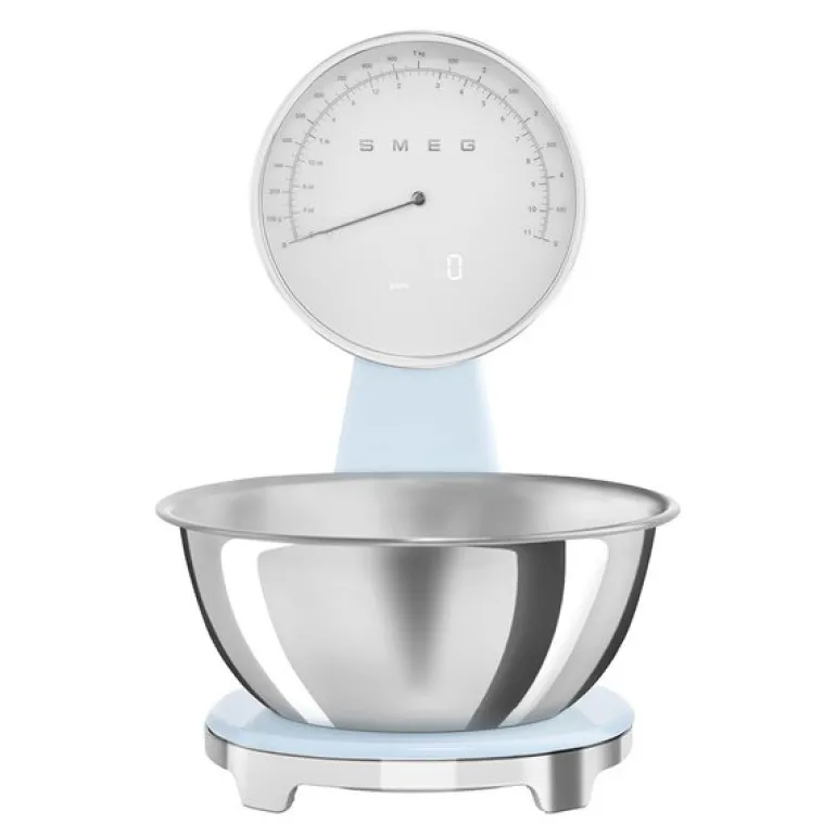 Med Smeg 50’s style kjøkkenvekt KSF01 i pastellblå får du en kombinasjon av retrodesign og moderne funksjonalitet som er et stilfullt innslag på ethvert kjøkken. Med sitt elegante 50-tallsinspirerte utseende, tilbyr denne vekten både sjarm og praktisk nytte i matlagingen.
