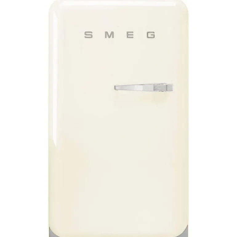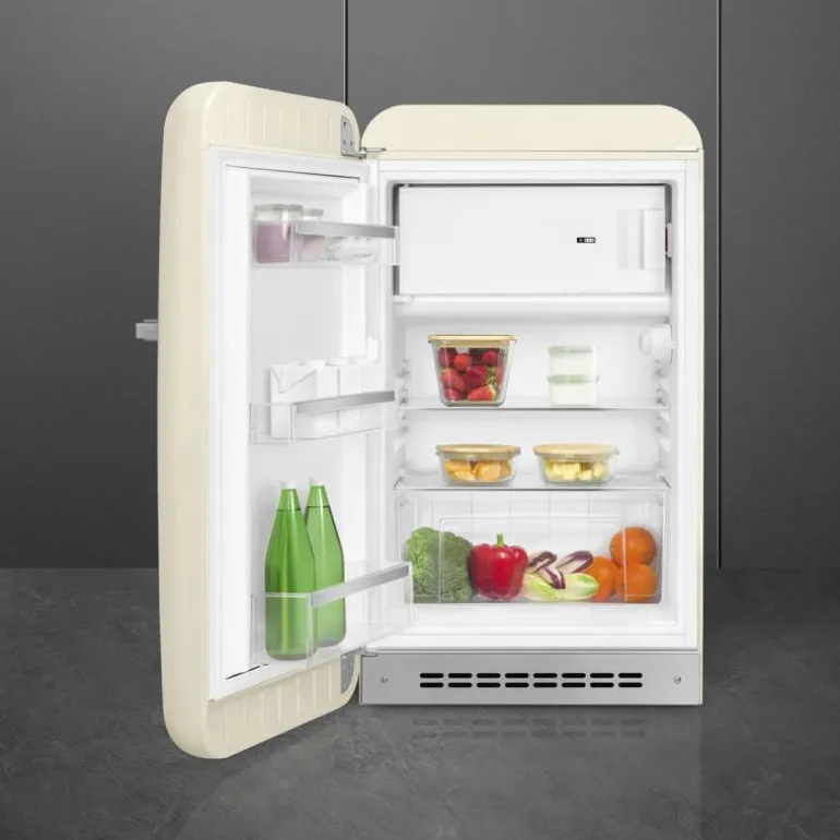 Smeg kjøleskap (FAB10) i retro 50`s design i fargen krem, venstrehengt med frysedel.