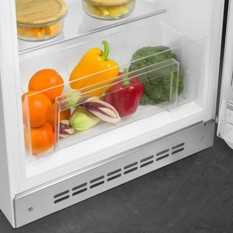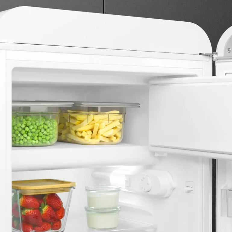 Oppdag det fantastiske Smeg kjøleskapet (FAB10) med et sjarmerende retrodesign fra 50-tallet, komplett med frysedel og høyrehengsling. Dette lekre kjøleskapet, formstøpt i plast, vil virkelig sette en elegant preg på ditt kjøkken.
