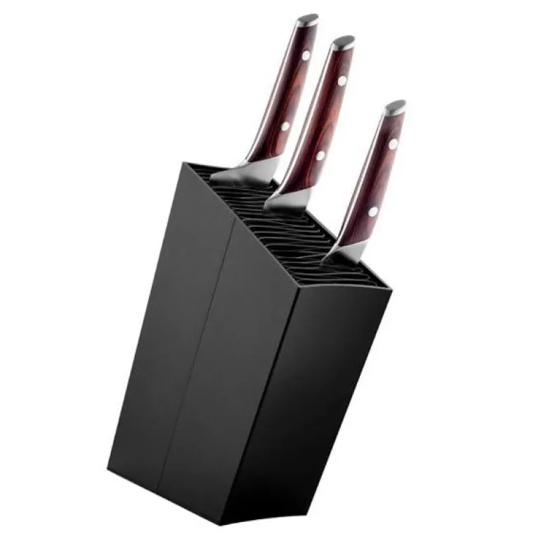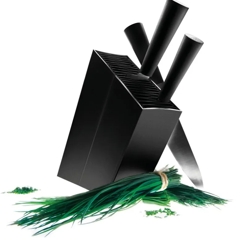 Med sitt minimalistiske og moderne uttrykk passer knivblokken inn i ethvert kjøkken. Den skrå utformingen gir enkel tilgang til knivene, og den finnes også i en rett versjon for de som ønsker et alternativt design.