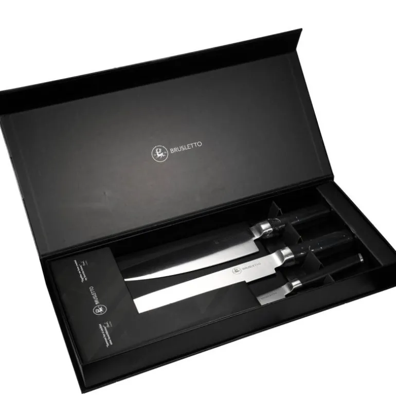 Brusletto knivsett i 3 deler er et praktisk sett som passer perfekt på kjøkkenet. Dette settet inneholder en kokkekniv, en brødkniv og et slipstål.
