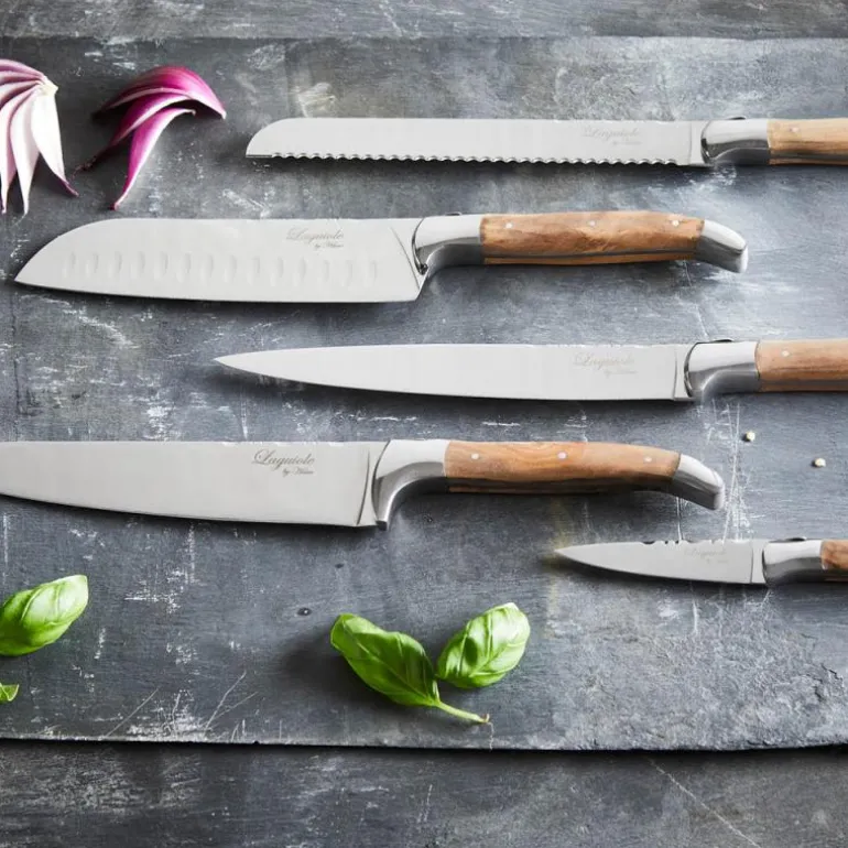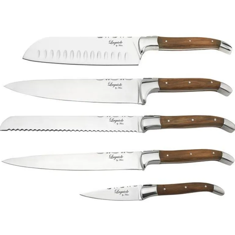 Hvis du er ute etter de rette verktøyene for kjøkkenet, vil dette knivsettet fra Laguiole by Hâws være en utmerket investering. Knivene er designet for å ligge godt i hånden, og de kombinerer høy kvalitet med et stilfullt utseende som gir kjøkkenet ditt et elegant preg. Med et håndtak laget av vakkert oliventre og knivblad av 420 rustfritt stål, er disse knivene både funksjonelle og estetisk tiltalende.