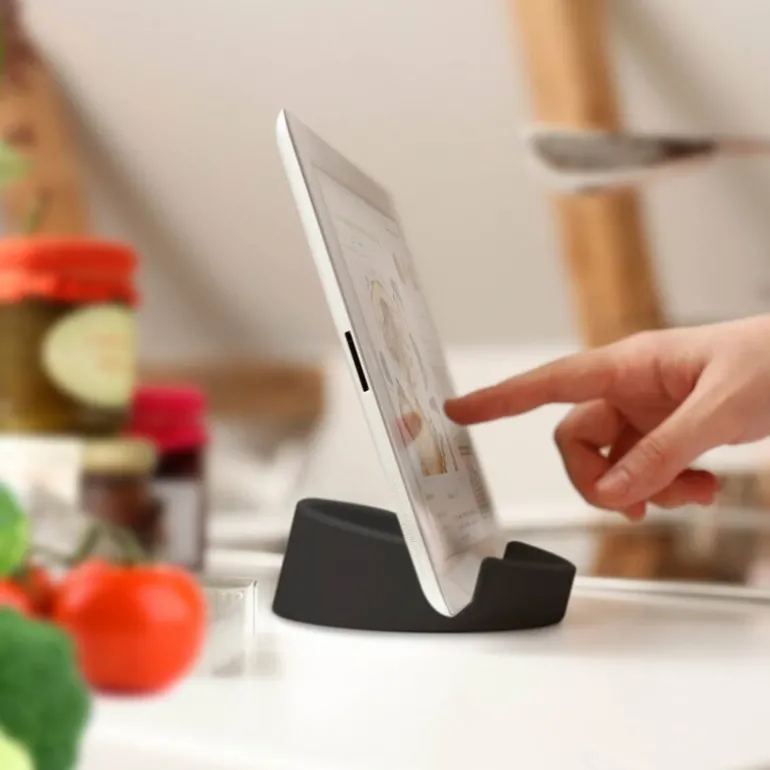 Kokebokstativ til nettbrett/mobil 11,4 cm svart fra Bosign er et allsidig kokebokstativ som gjør matlagingen enklere ved å gi deg en trygg og praktisk plass til nettbrett eller mobiltelefon. Enten du følger oppskrifter på nett, ser matlagingsvideoer, eller hører på favorittmusikken din mens du kokkelerer, sikrer dette stativet at enheten din er plassert i perfekt vinkel.