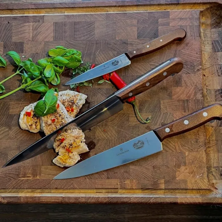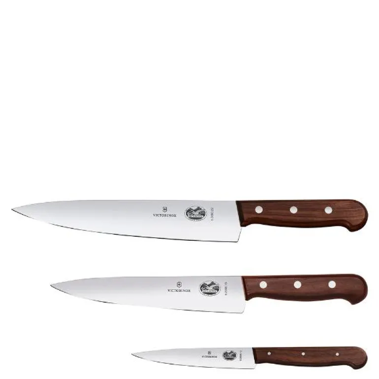 Victorinox sitt kokkesett er et knivsett med 3 sylskarpe kokkekniver på 12 cm, 19 cm og 22 cm. Sammen dekker disse knivene et bredt kuttebehov på kjøkkenet – fra små til store råvarer.