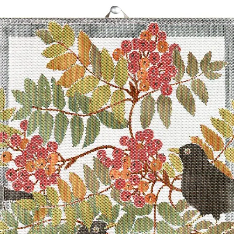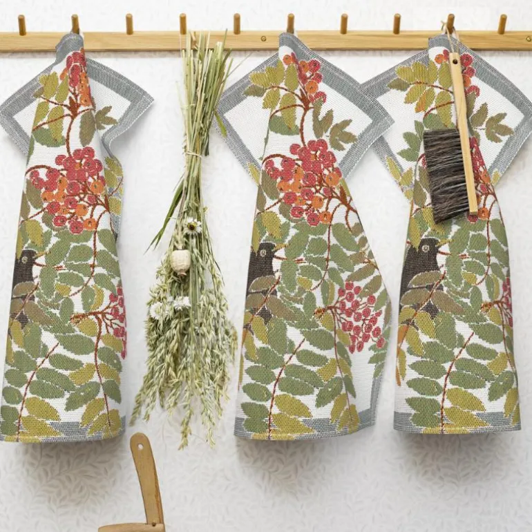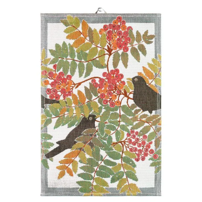 Koltrast kjøkkenhåndkle fra Ekelund er et praktisk og dekorativt tekstil som gir kjøkkenet et naturlig og levende uttrykk. Motivet, skapt av Leif Holgersson, viser vakre svarte koltraster omringet av frodige, høstlige klaser med rognebær. Med målene 40×60 cm er håndkleet ideelt til bruk på kjøkkenet, men fungerer også godt som dekorativ detalj i andre rom.