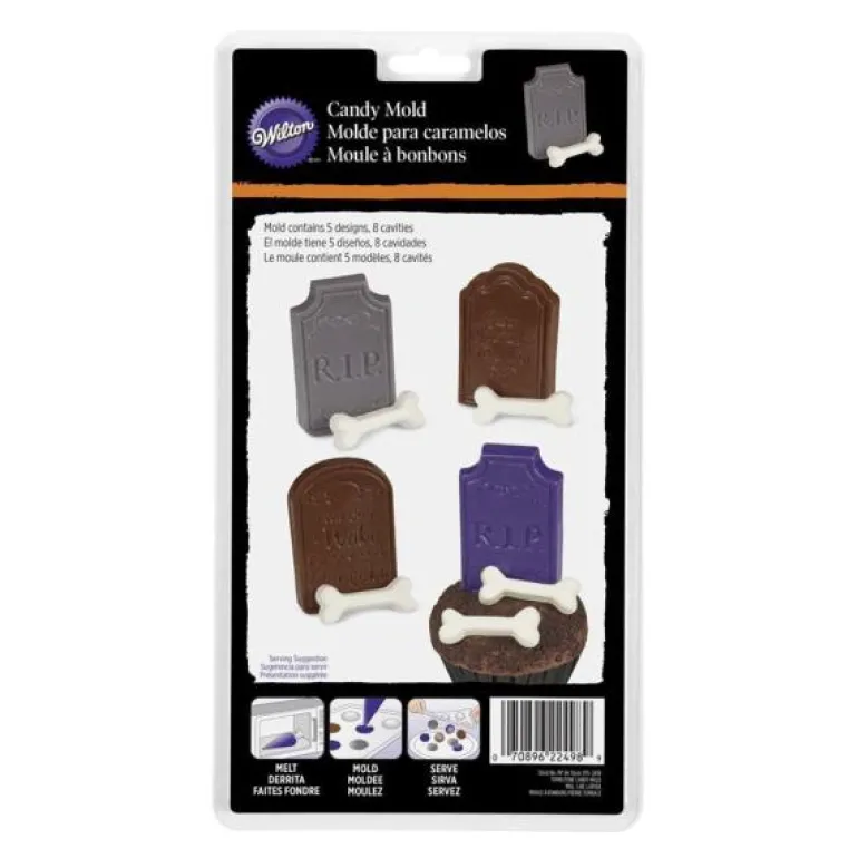 Konfektformen fra Wilton gjør at du kan lage dekorasjoner formet som gravsteiner eller ben, perfekt for halloweenfesten.