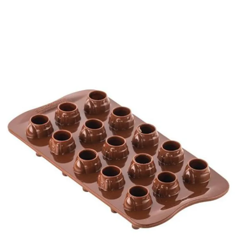 Formen lar deg lage 15 sjokolader per form. Inne i pakken finner du en veldig nyttig oppskrift for å lage perfekte sjokolader.
