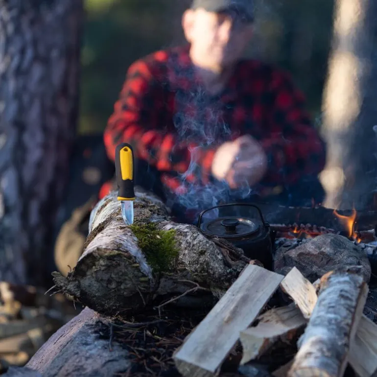 Brusletto Kongla allroundkniv 15,5 cm i gul/svart er en praktisk og slitesterk turvenn. Den kompakte størrelsen gjør den enkel å ta med – i beltet, på sekken eller rett i lommen. Sliren har en karabinkrok som gjør transporten enda enklere.
